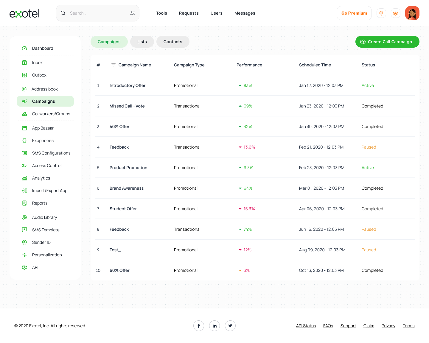 Exotel Dashboard Redesign