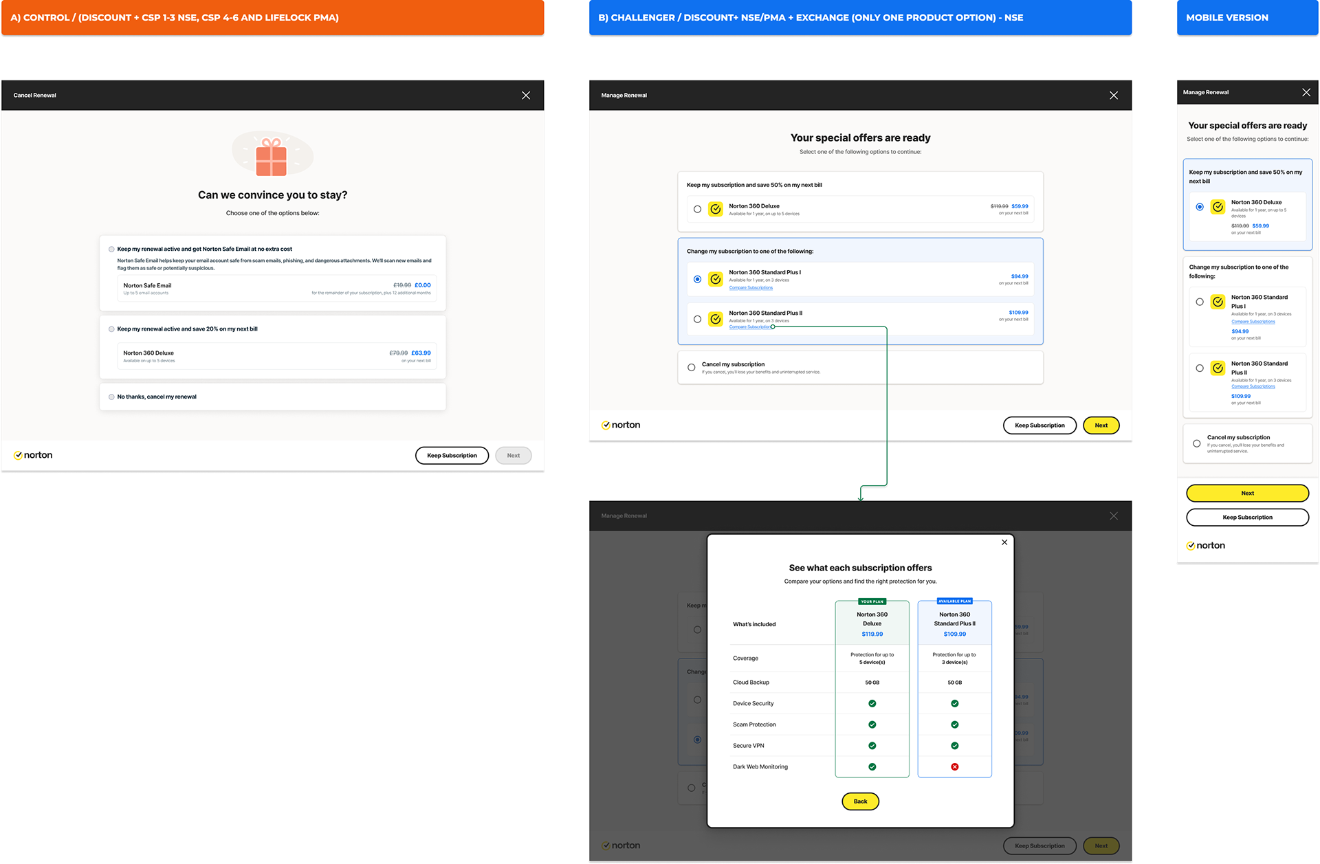 The scope included desktop and mobile renewal experiences, specifically targeting users who initiated cancellation despite having access to discounts, plan downgrades, or added-value bundles.